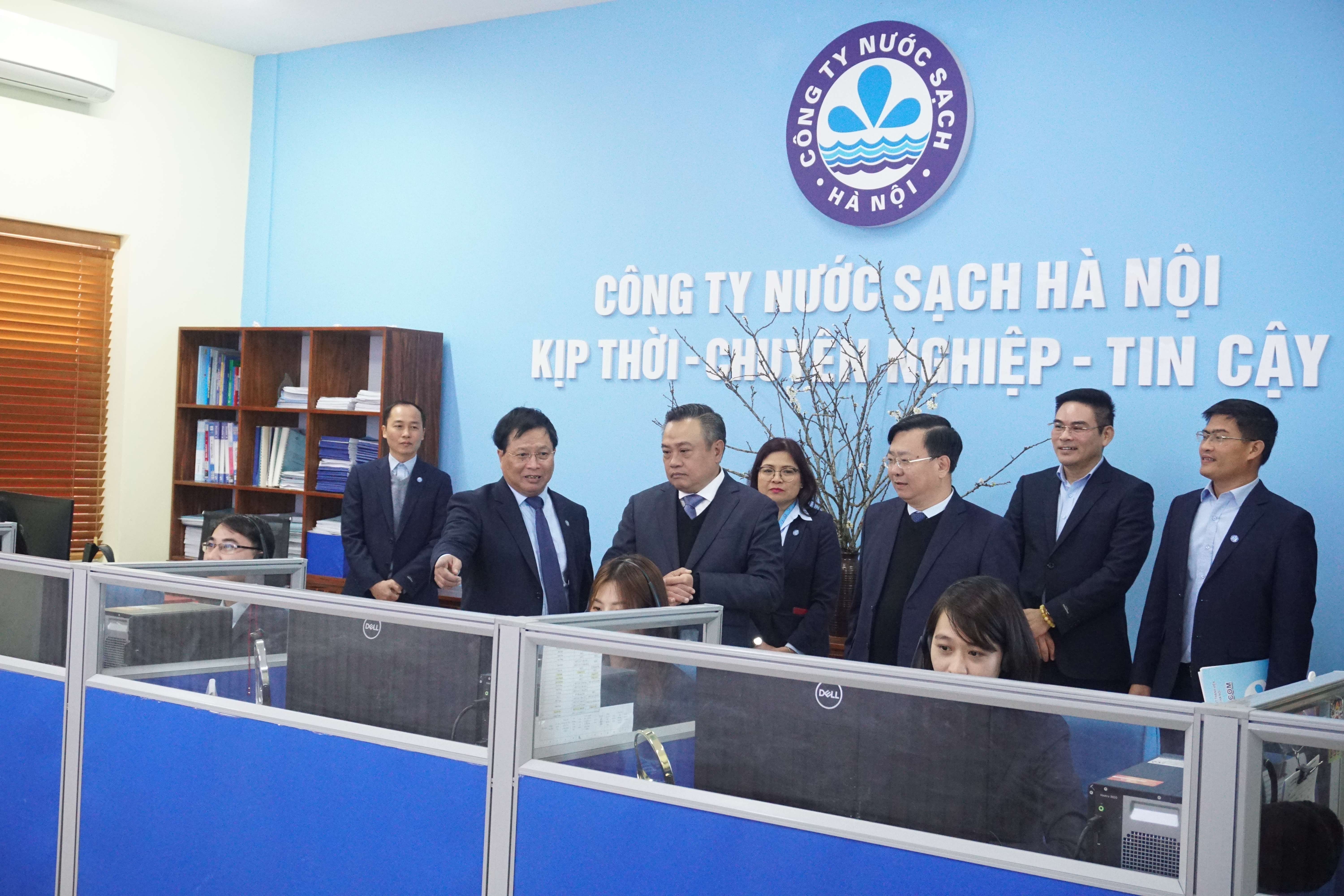 Chủ tịch UBND Thành phố Hà Nội đến kiểm tra công tác cấp nước Tết Nguyên 2024 đán tại Công ty Nước sạch Hà Nội