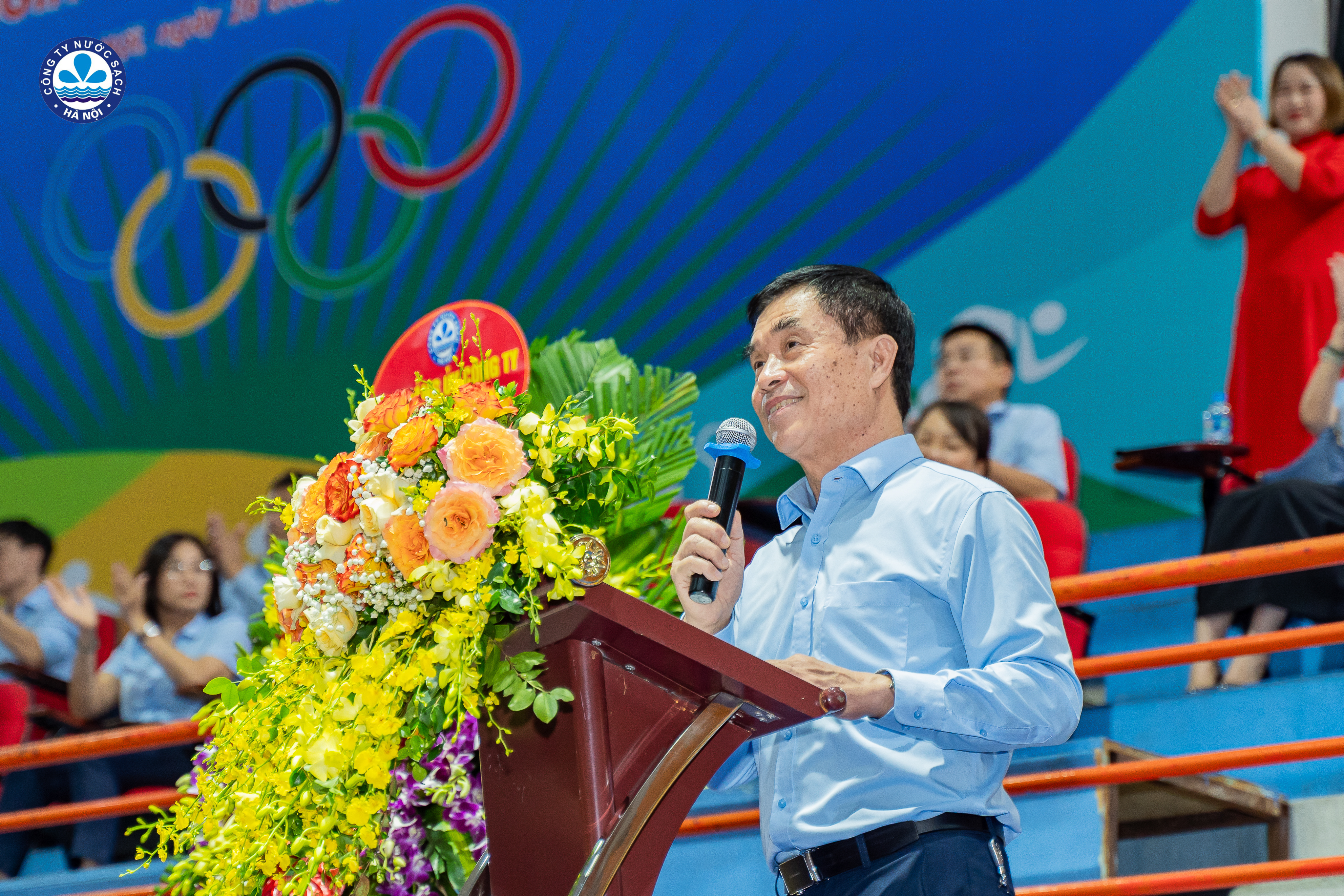 Thay mặt Ban lãnh đạo Công ty, ông Nguyễn Bảo Vinh, Chủ tịch Hội đồng Thành viên phát biểu khai mạc Hội thao. Trong suốt chặng đường xây dựng và phát triển, tập thể CBCNV Công ty Nước sạch Hà Nội không chỉ nỗ lực hoàn thành tốt các nhiệm vụ chính trị Thành phố giao là đảm bảo cung cấp nguồn nước sạch, đảm bảo an sinh xã hội cho nhân dân Thủ đô, mà còn luôn quan tâm đến đời sống tinh thần, thể chất của người lao động. Hội thao Công ty Nước sạch Hà Nội là một hoạt động thường niên góp phần đẩy mạnh phong trào thể dục thể thao, rèn luyện sức khỏe cho CBCNV với tinh thần “Khỏe để lao động sản xuất”. Đây là dịp để toàn thể CBCNV Công ty cùng giao lưu, học hỏi đồng thời thể hiện sự gắn bó, đồng lòng giữa các đơn vị trong toàn Công ty. Hội thao là hình ảnh hội tụ đoàn kết của Công ty Nước sạch Hà Nội, là hoạt động thiết thực chào mừng 80 năm ngày Quốc khánh 2/9 hướng tới chào mừng 131 năm Ngành nước Hà Nội và 71 năm ngày truyền thống Công ty 25/10/2025.