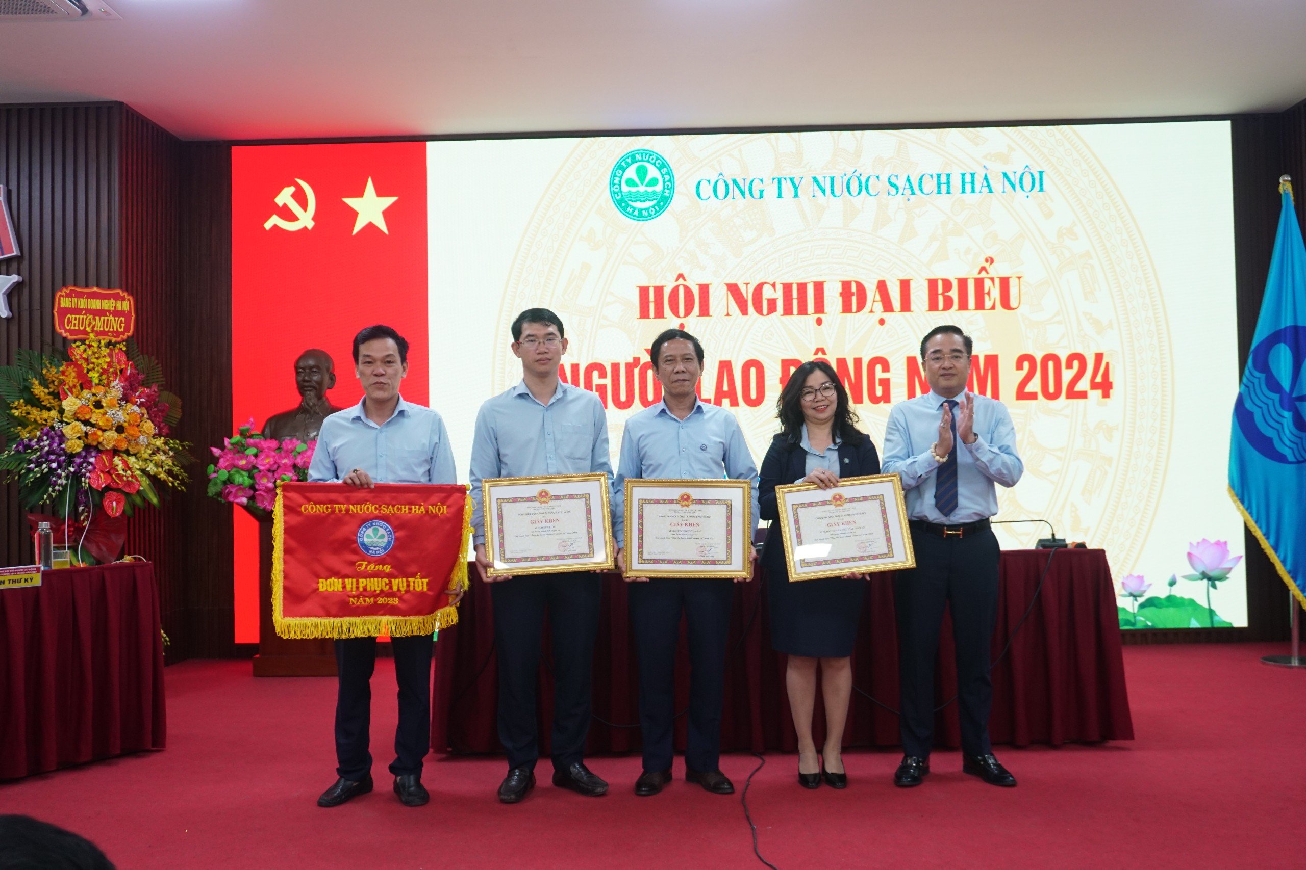 Hội nghị cũng công bố các Quyết định khen thưởng cho tập thể, cá nhân có thành tích đóng góp cho kết quả hoàn thành kế hoạch sản xuất kinh doanh Công ty năm 2023 bao gồm: 04 đơn vị “Tập thể lao động tiên tiến”, 09 đơn vị “Tập thể hoàn thành tốt nhiệm vụ”, 17 đơn vị “Tập thể hoàn thành nhiệm vụ”, 04 đơn vị tiêu biểu khối thi đua, 75 Chiến sĩ thi đua cơ sở; 448 Lao động tiên tiến và 1.171 Lao động hoàn thành tốt nhiệm vụ. Công ty UBND Thành phố Hà Nội tặng Cờ “Đơn vị xuất sắc phong trào thi đua năm 2023”