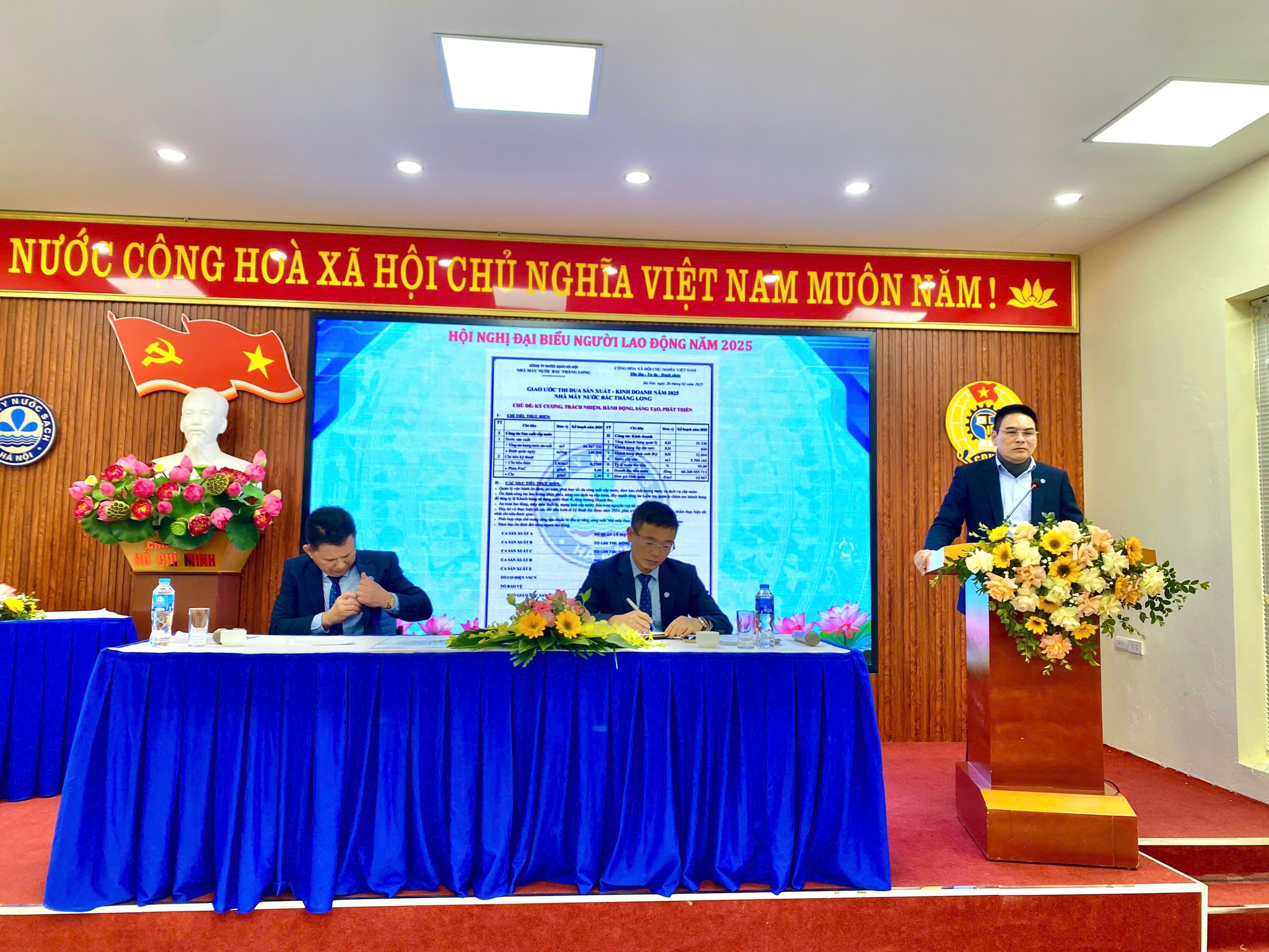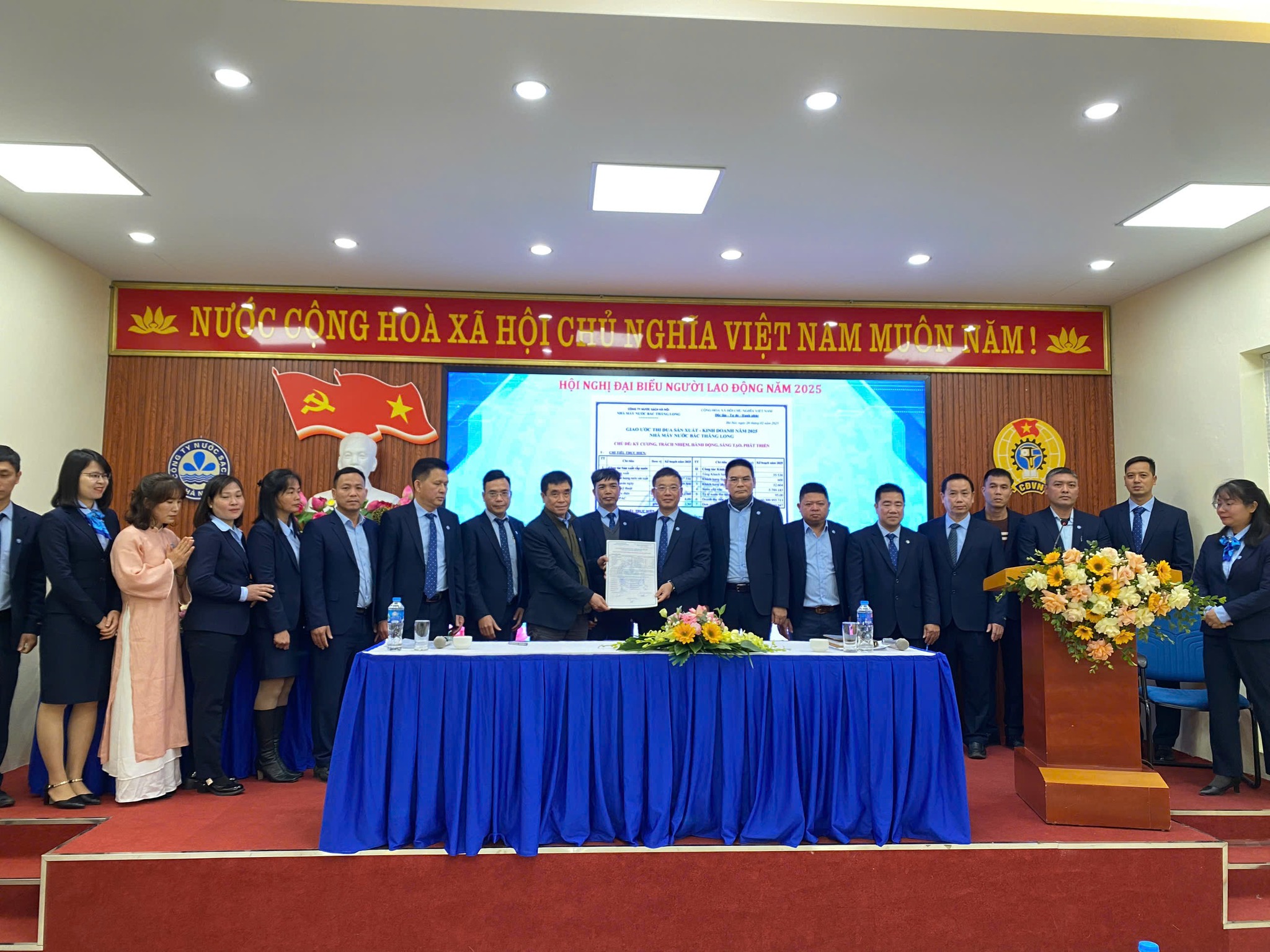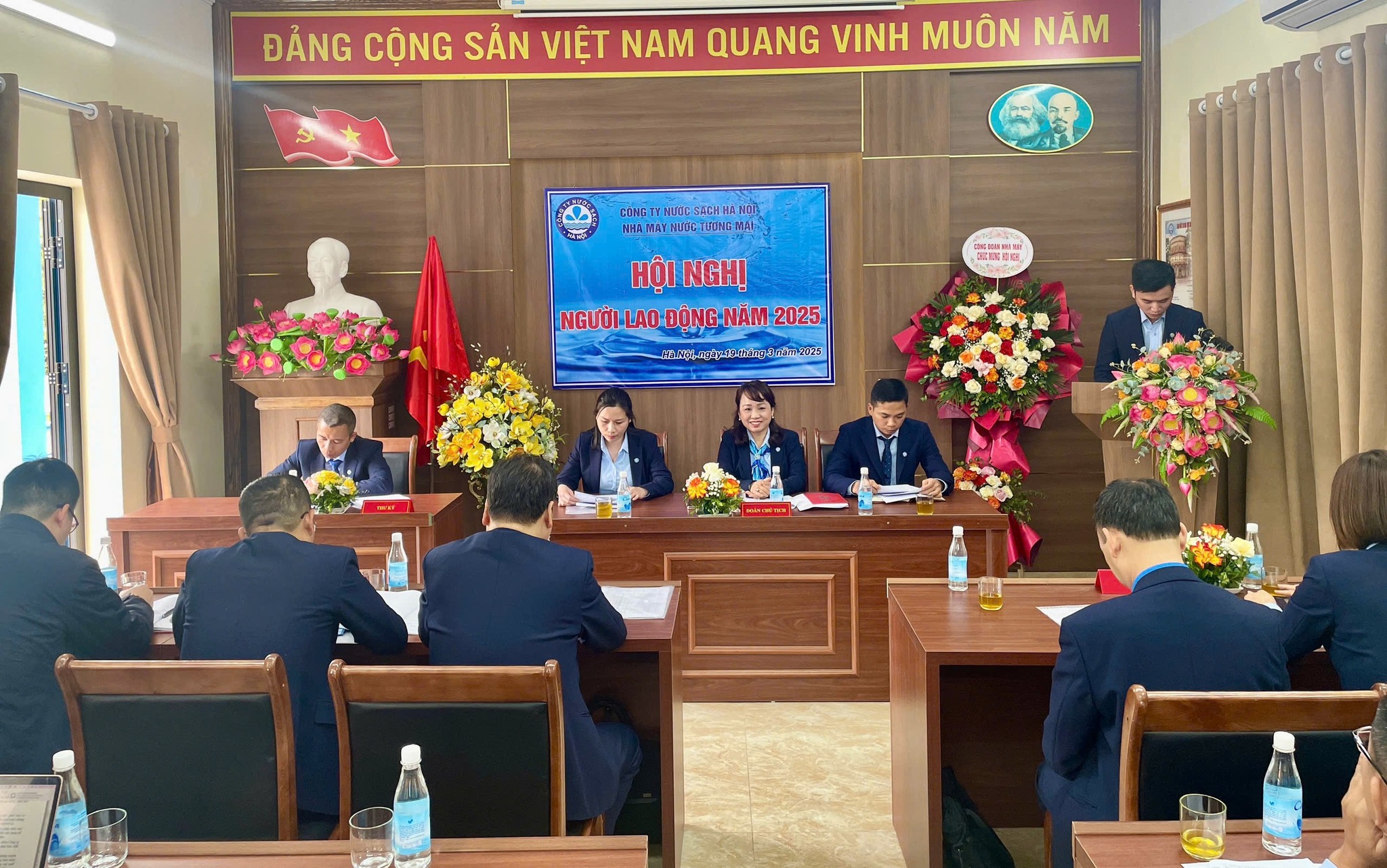 Kế hoạch tổ chức Hội nghị người lao động năm 2025 của Công ty Nước sạch Hà Nội đã được ban hành và triển khai công tác chuẩn bị từ ngày 20/1/2025. Từ ngày 6/2/2025 đến ngày 25/3/2025, 22 đơn vị và khối phòng ban thuộc Công ty Nước sạch Hà Nội đã triển khai tổ chức Hội nghị người lao động cấp đơn vị năm 2025. Tại mỗi Hội nghị, Ban Tổng giám đốc và đại diện các phòng, ban của Công ty đã đến dự để lắng nghe, ghi nhận những ý kiến, nguyện vọng của các đơn vị. Đồng thời ghi nhận, biểu dương thành tích các đơn vị, phòng ban đã đạt được và định hướng mục tiêu, yêu cầu, nhiệm vụ triển khai kế hoạch sản xuất kinh doanh năm 2025.