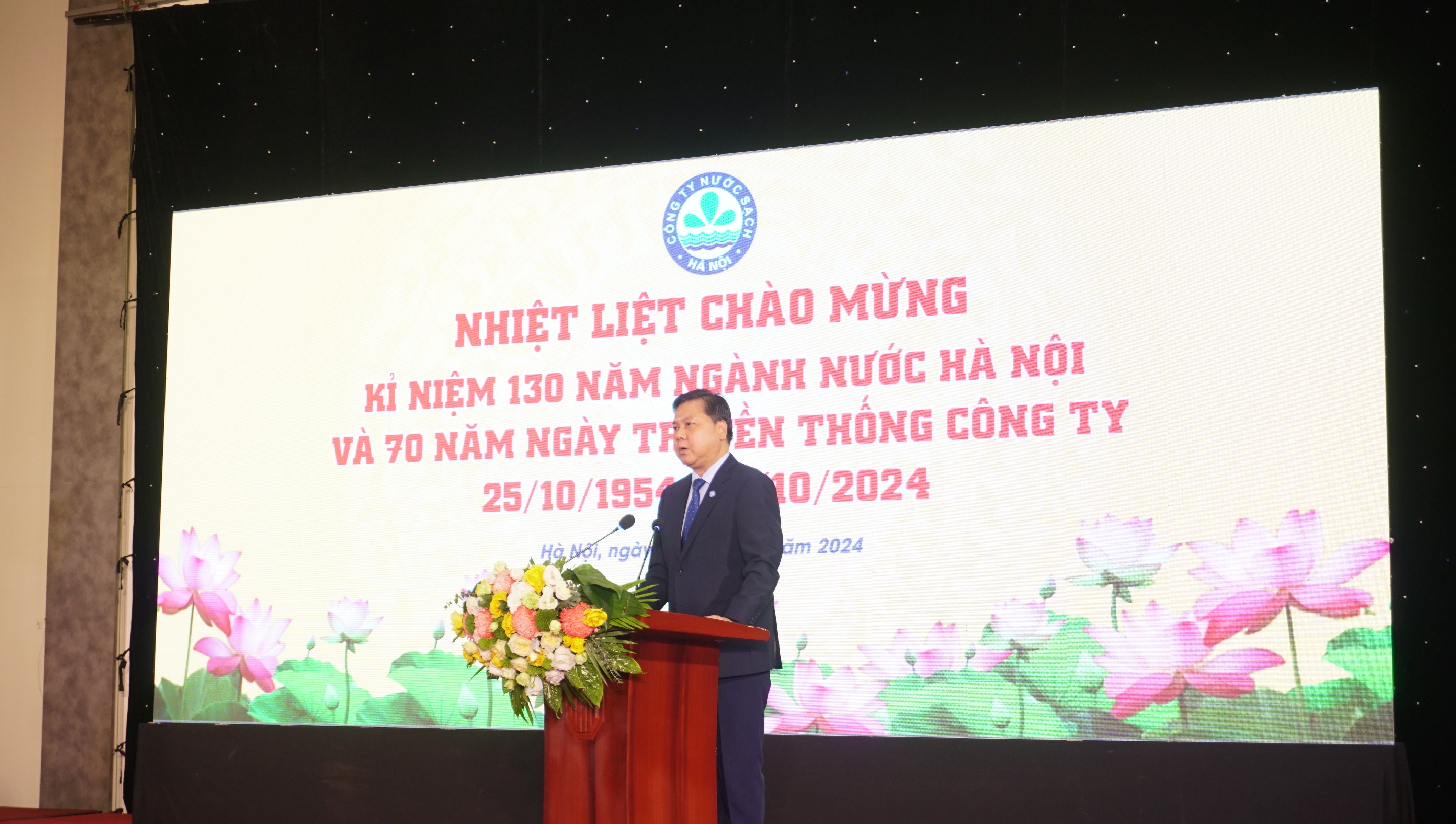 Sáng ngày 25/10/2024, Công ty Nước sạch Hà Nội long trọng tổ chức Lễ kỷ niệm 130 năm ngành nước Hà Nội và 70 năm ngày truyền thống Công ty 25/10/1954 – 25/10/2024. Đây là một ngày lễ đặc biệt, ngày hội của toàn thể các thế hệ CBCNV đã và đang làm việc tại Công ty Nước sạch cùng tự hào ôn lại những trang sử hào hùng, những truyền thống tốt đẹp của người công nhân ngành nước song hành cùng cuộc kháng chiến vĩ đại của Thủ đô Hà Nội ngàn năm văn hiến.