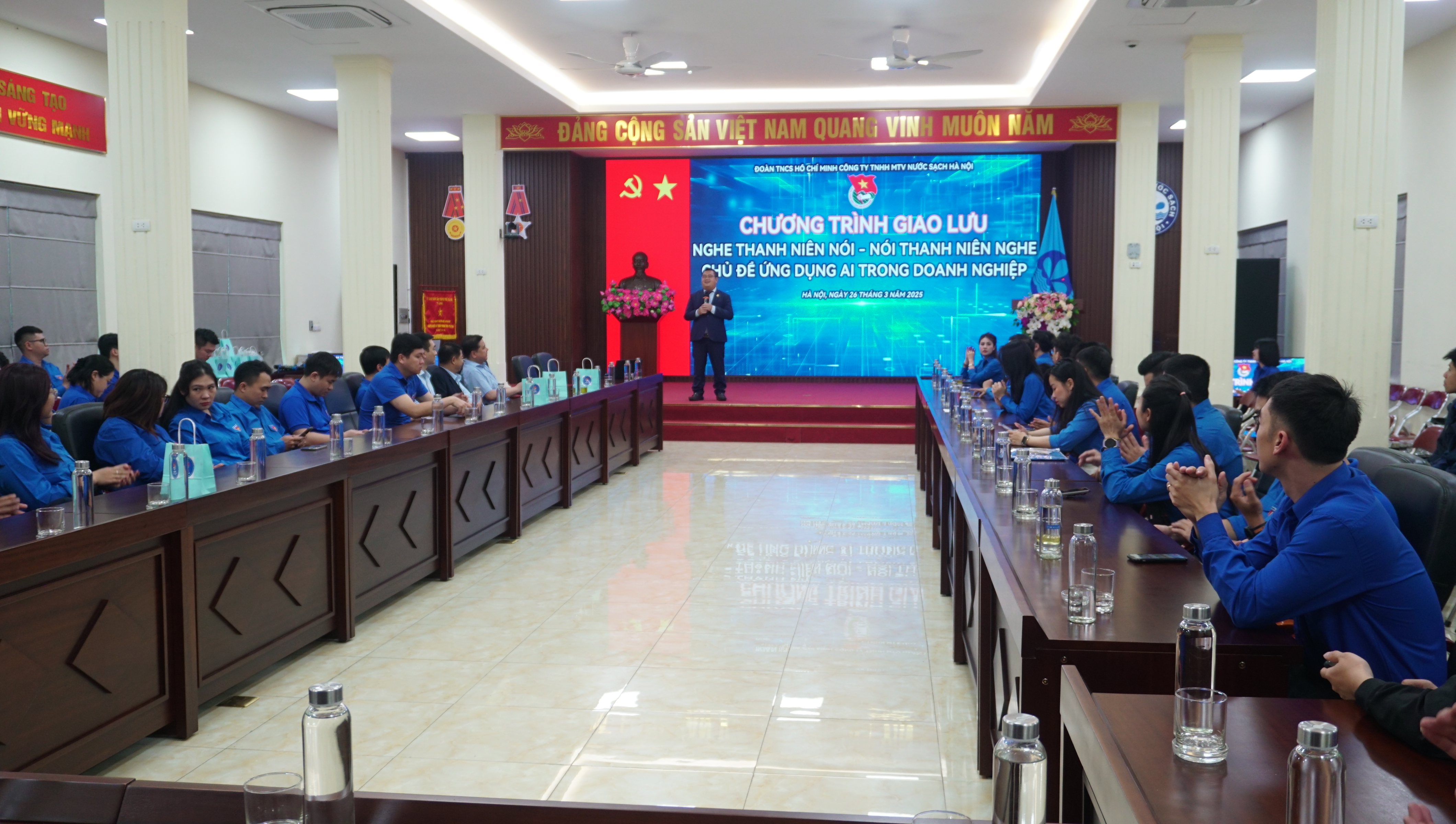 Trong không khí tuổi trẻ cả nước đang hăng hái thi đua, lập thành tích hướng tới chào mừng kỷ niệm 94 năm ngày thành lập Đoàn Thanh niên Cộng sản Hồ Chí Minh (26/3/1931 – 26/3/2025), được sự quan tâm tạo điều kiện của Ban lãnh đạo Đảng ủy, Chính quyền Công ty, sáng ngày 26/3/2025, Đoàn Thanh niên Công ty Nước sạch Hà Nội đã tổ chức lễ kỷ niệm 94 năm ngày thành lập Đoàn Thanh niên Cộng sản Hồ Chí Minh, phát động Tháng thanh niên, phong trào thi đua thanh niên trong lao động và sáng tạo năm 2025.