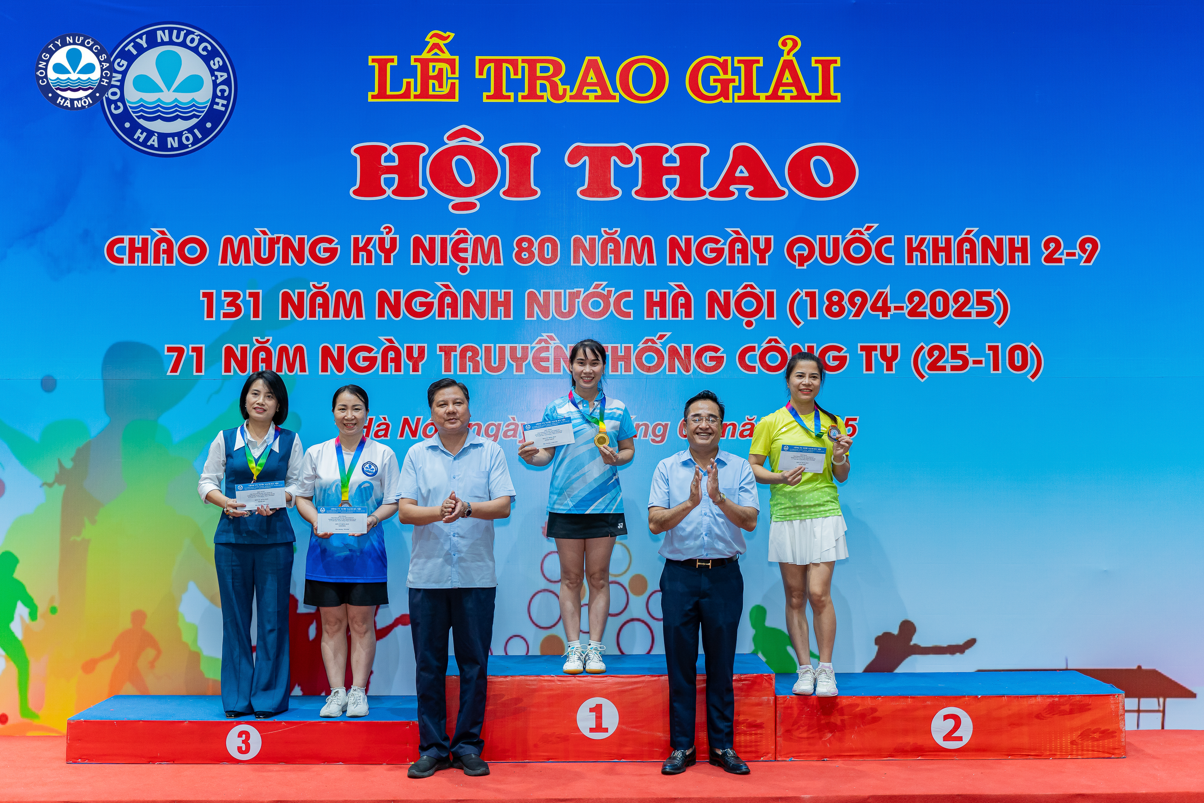 Kết quả trao giải tại Hội thao Công ty Nước sạch Hà Nội như sau: