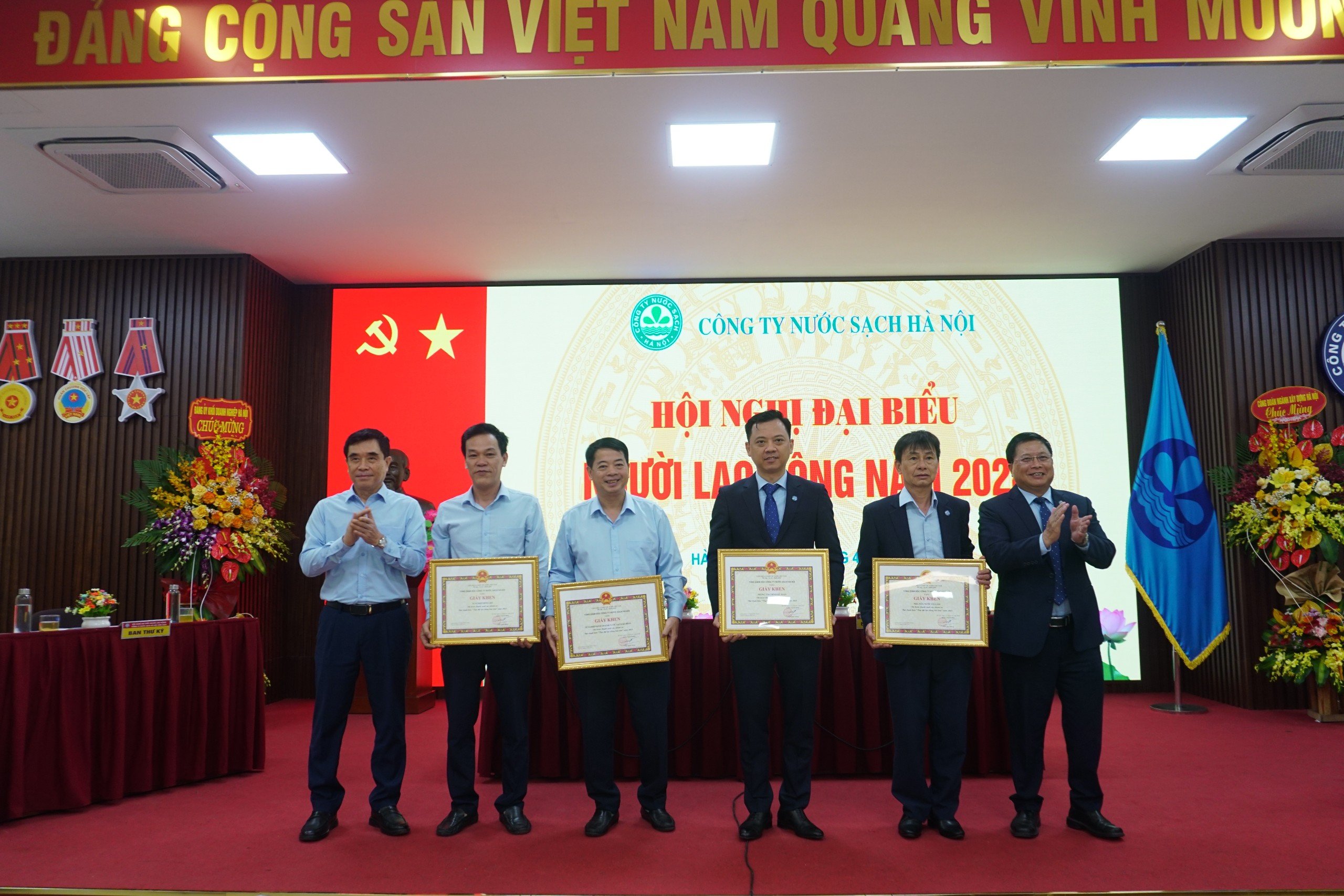 Hội nghị cũng công bố các Quyết định khen thưởng cho tập thể, cá nhân có thành tích đóng góp cho kết quả hoàn thành kế hoạch sản xuất kinh doanh Công ty năm 2023 bao gồm: 04 đơn vị “Tập thể lao động tiên tiến”, 09 đơn vị “Tập thể hoàn thành tốt nhiệm vụ”, 17 đơn vị “Tập thể hoàn thành nhiệm vụ”, 04 đơn vị tiêu biểu khối thi đua, 75 Chiến sĩ thi đua cơ sở; 448 Lao động tiên tiến và 1.171 Lao động hoàn thành tốt nhiệm vụ. Công ty UBND Thành phố Hà Nội tặng Cờ “Đơn vị xuất sắc phong trào thi đua năm 2023”