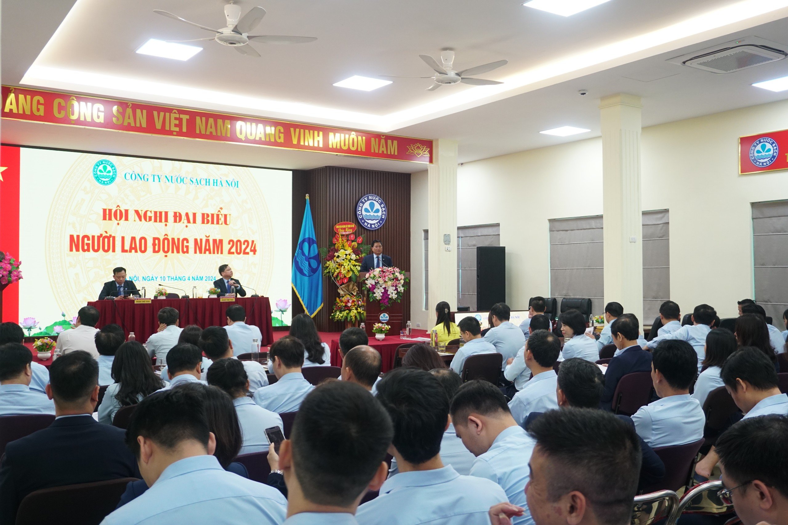 Sáng ngày 10/4/2024, Công ty Nước sạch Hà Nội tổ chức thành công Hội nghị đại biểu người lao động năm 2024 với chủ đề “Kỷ cương, đoàn kết, sáng tạo, hành động, phát triển”.