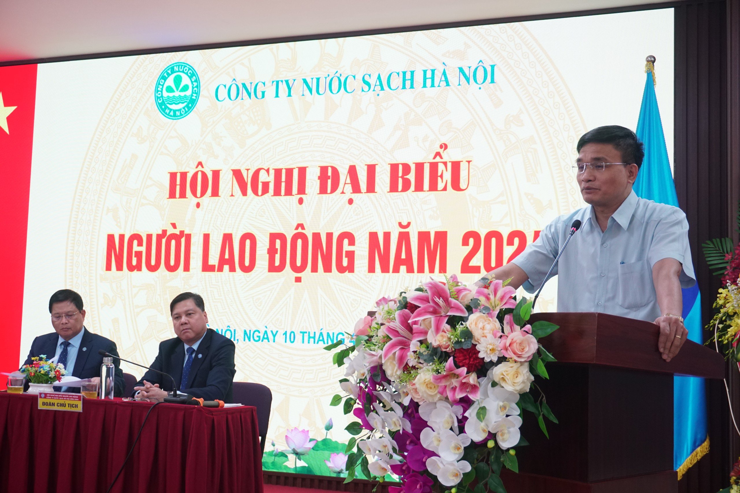 Hội nghị đã lắng nghe ông Nguyễn Trường Sơn, Bí thư Đảng ủy khối doanh nghiệp Hà Nội chúc mừng những thành tích đã đạt được trong năm vừa qua của Công ty Nước sạch Hà Nội. Đồng thời đánh giá cao công tác chuẩn bị và công tác tổ chức Hội nghị người lao động của Công ty. Thành công của Hội nghị là phát huy cao tinh thần truyền thông đoàn kết thống nhất dân chủ, người lao động đều được trình bày tâm tư nguyện vọng trở thành Nghị quyết tập thể, nguyên tắc tập trung dân chủ. Dưới sự lãnh đạo của Đảng, Công ty Nước sạch Hà Nội đã thực hiện tốt các nhiệm vụ được giao, chức năng nhiệm của của Đảng ủy theo đúng Quy định số 08 ngày 20/12/2021 của Ban Bí thư về tổ chức Đảng trong doanh nghiệp Nhà nước. Phải có trách nhiệm lãnh đạo toàn diện từ sản xuất kinh doanh, công tác chính trị tư tưởng, tổ chức cán bộ, kiểm tra giám sát, đổi mới phương thức lãnh đạo của Đảng, các đoàn thể chính trị như Công đoàn, Đoàn thanh niên, Hội cựu chiến binh... Công tác tổ chức cán bộ, đào tạo bồi dưỡng, quy hoạch cán bộ với tầm nhìn bao quát, thế hệ sau được vun đắp, đào tạo tiếp nối truyền thống của thế hệ đi trước, đáp ứng yêu cầu hội nhập trong thời đại mới.