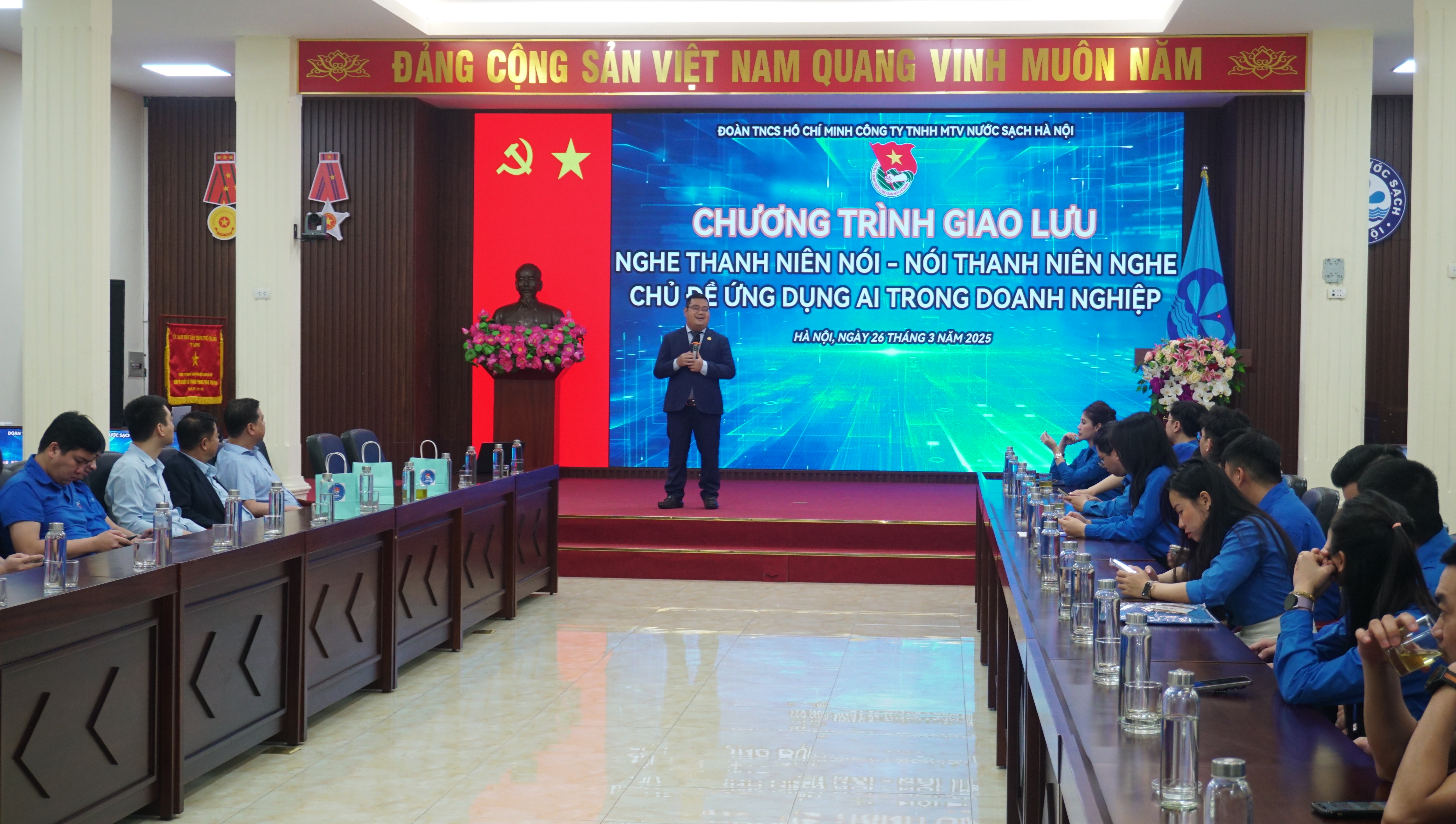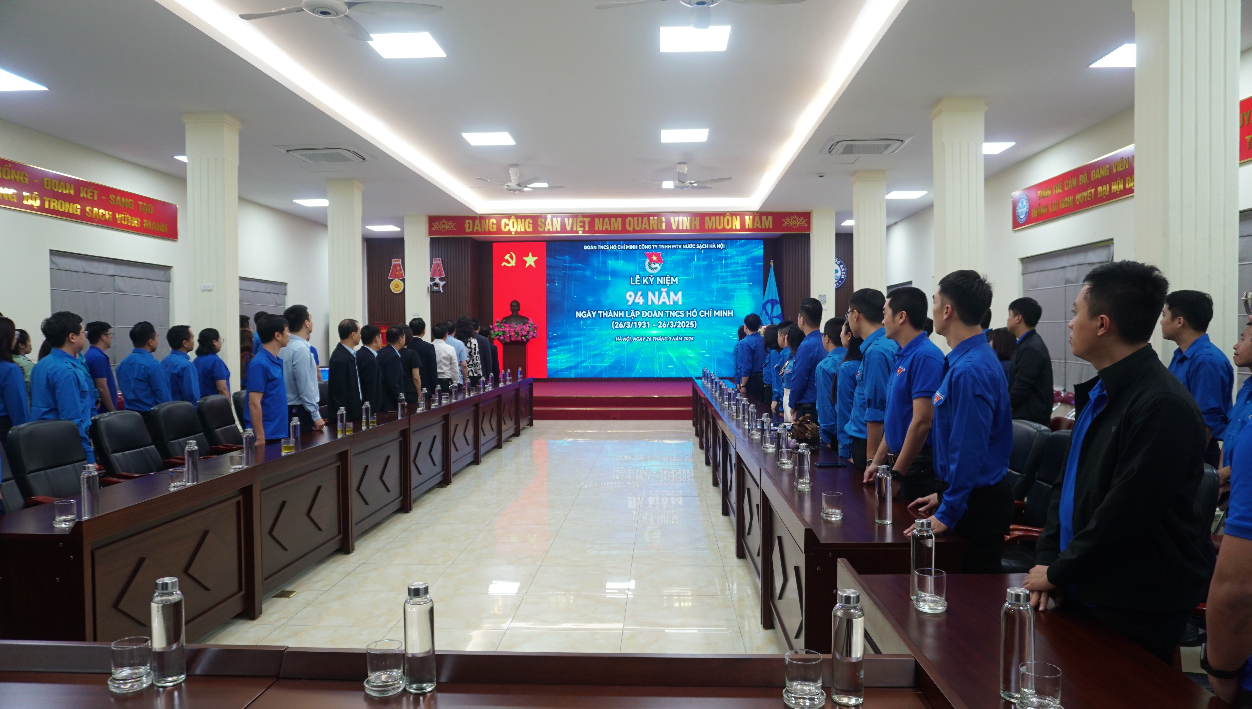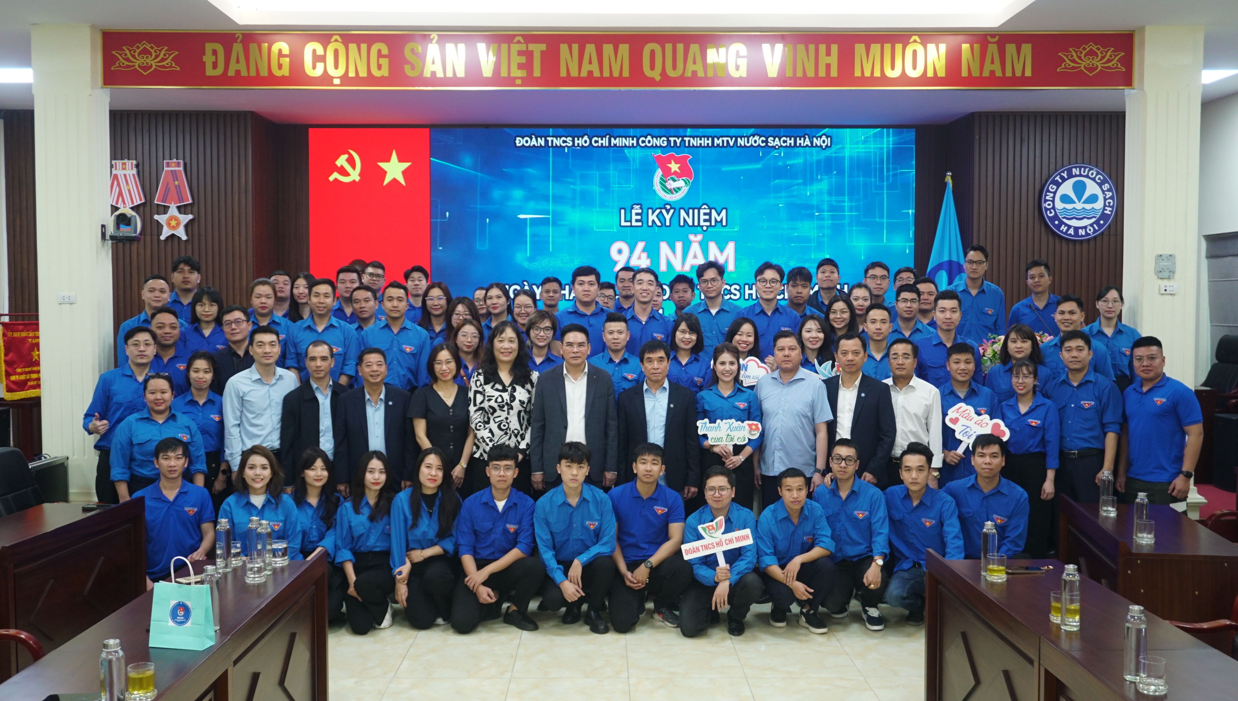 Trong không khí tuổi trẻ cả nước đang hăng hái thi đua, lập thành tích hướng tới chào mừng kỷ niệm 94 năm ngày thành lập Đoàn Thanh niên Cộng sản Hồ Chí Minh (26/3/1931 – 26/3/2025), được sự quan tâm tạo điều kiện của Ban lãnh đạo Đảng ủy, Chính quyền Công ty, sáng ngày 26/3/2025, Đoàn Thanh niên Công ty Nước sạch Hà Nội đã tổ chức lễ kỷ niệm 94 năm ngày thành lập Đoàn Thanh niên Cộng sản Hồ Chí Minh, phát động Tháng thanh niên, phong trào thi đua thanh niên trong lao động và sáng tạo năm 2025.