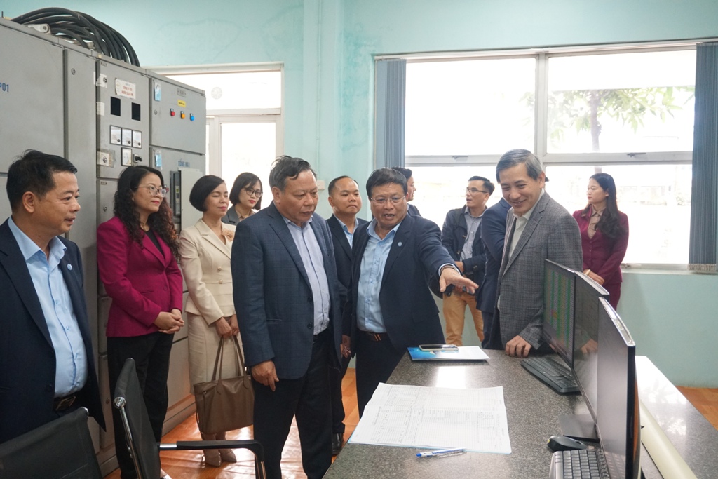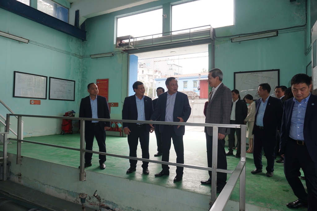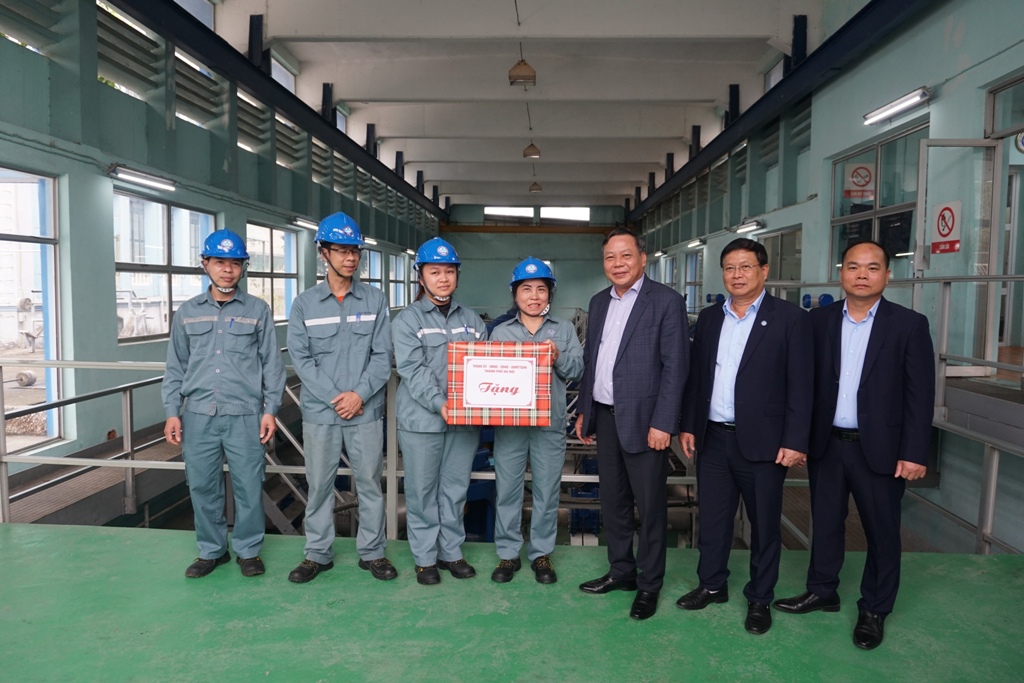 Cũng trong buổi làm việc, đoàn công tác do Phó Bí thư Thành ủy Nguyễn Văn Phong đã đến thăm hỏi động viên các công nhân của nhà máy nước Yên Phụ đang trực tiếp sản xuất cấp nước.