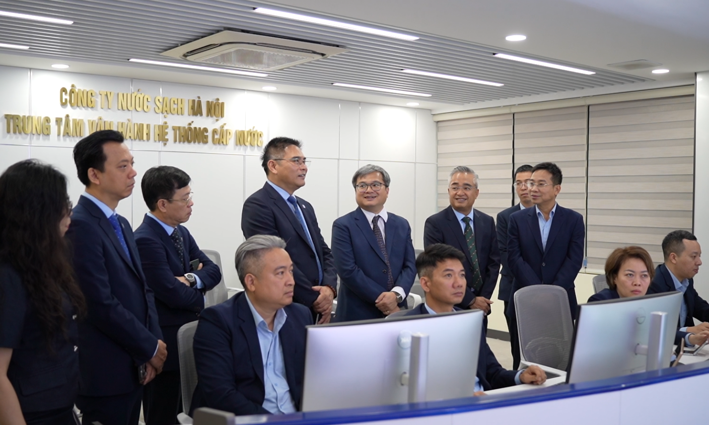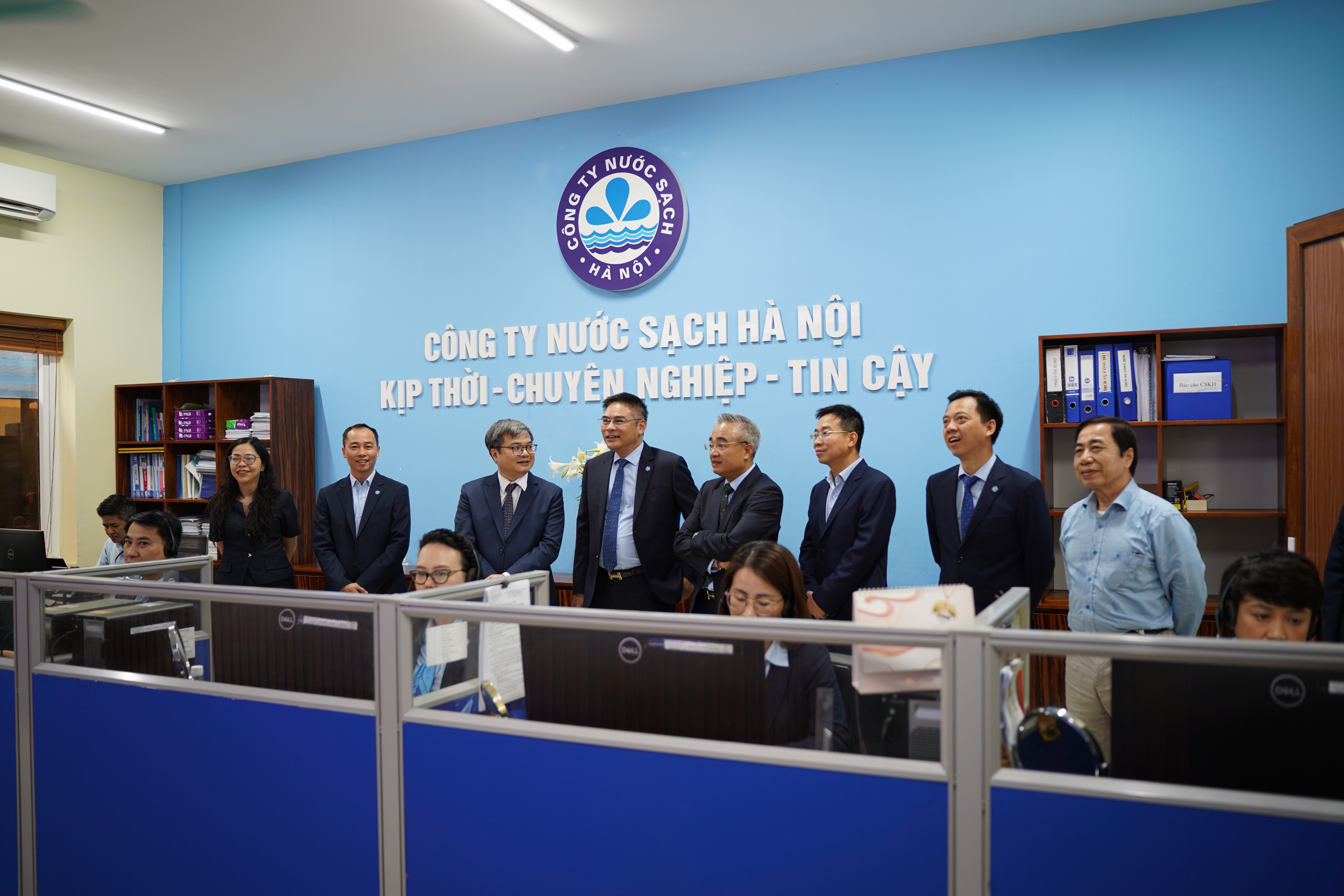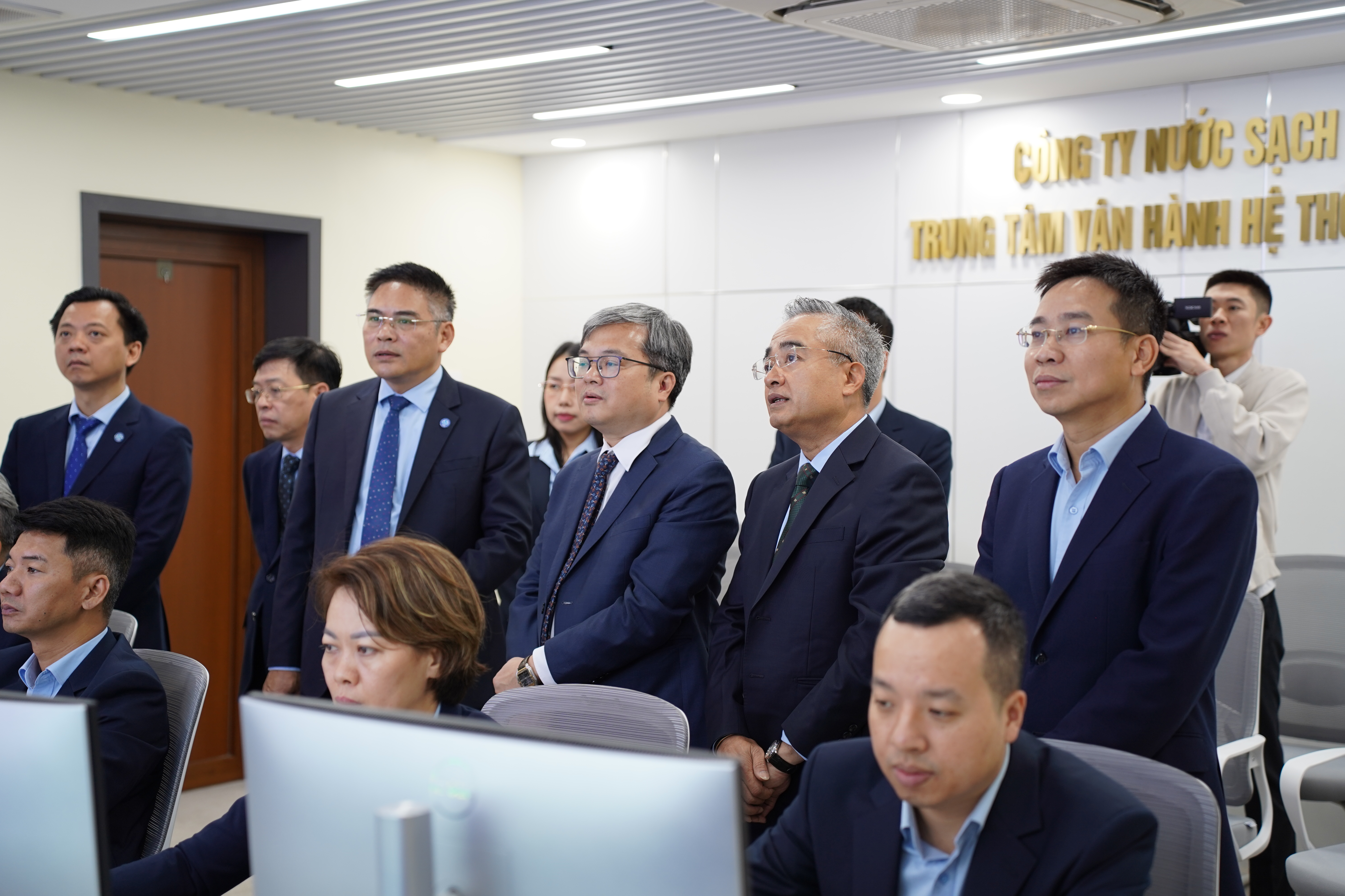 Trong khuôn khổ chương trình làm việc, Phó Chủ tịch UBND Thành phố Hà Nội đến tham quan Trung tâm vận hành cấp nước và Tổng đài chăm sóc khách hàng Công ty Nước sạch Hà Nội